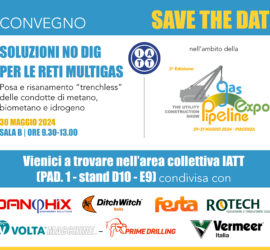 IATT ha rinnovato la sua presenza al Pipeline & Gas Expo che si terrà a Piacenza dal 29 al 31 maggio p.v. insieme ad alcune aziende associate che presenteranno soluzioni “trenchless” per la posa ed il risanamento delle reti multigas. Vienici a trovare al Pad 1 – stand D10 – […]